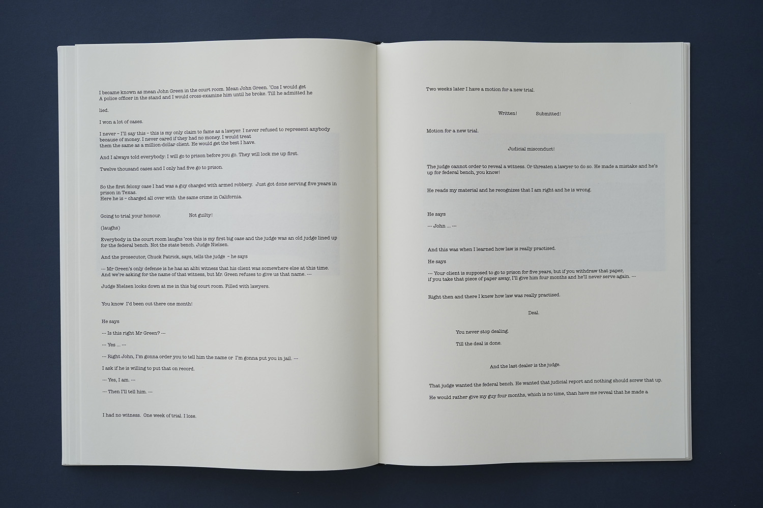 The images, arranged in series, suggest a constant movement without arrival showing the leftovers of the landscape once representative for the dream of the west. Trucks, highways, infrastructure and decay pass by while John tells his tale.